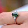 Green Hope. Elegantní prsten s 1,40kr zeleným turmalinem a šesti bílými safíry po krajích ve stříbře. K dispozici v US velikosti 6 a ve francouzské 52. O turmalínu se říká, že nám pomáhá vidět zázraky života. Věří se, že pomáhá detoxikovat tělo a posiluje naše nervy, srdce a střeva.