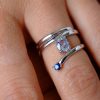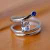Úplně jako ve starověkém Egyptě … Souhra bílého a modrého safíru na tomto stříbrném prstenu, který trochu připomíná královskou korunu. US 6 ½ a francouzská 53.